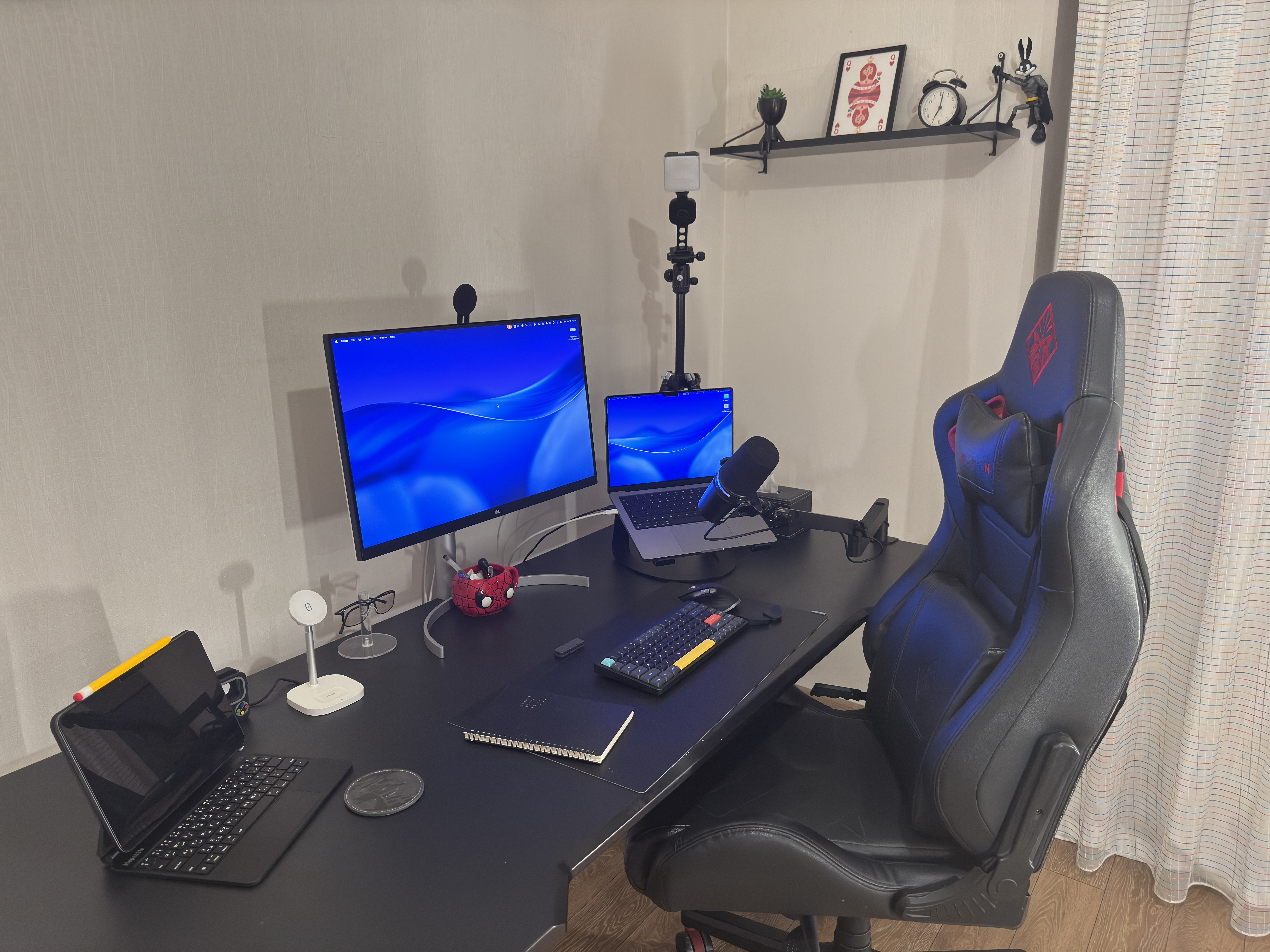 Gaming desk needs a gaming chair, right? Spending 8+ hours daily sitting meant I had to invest in my back's future. It looks so good on camera that everyone asks about it in meetings. Did I buy it for back support or to look COOL!? At this point, I honestly don't know. Plot twist: I threw away the armrests, I prefer resting my hands on the desk itself.